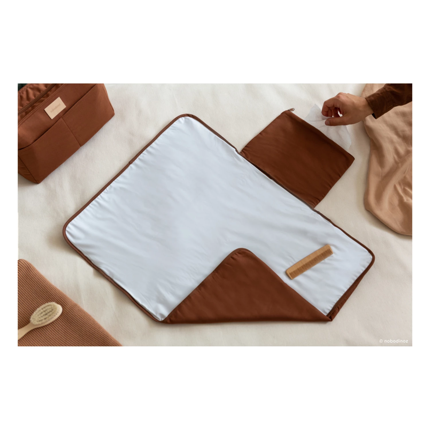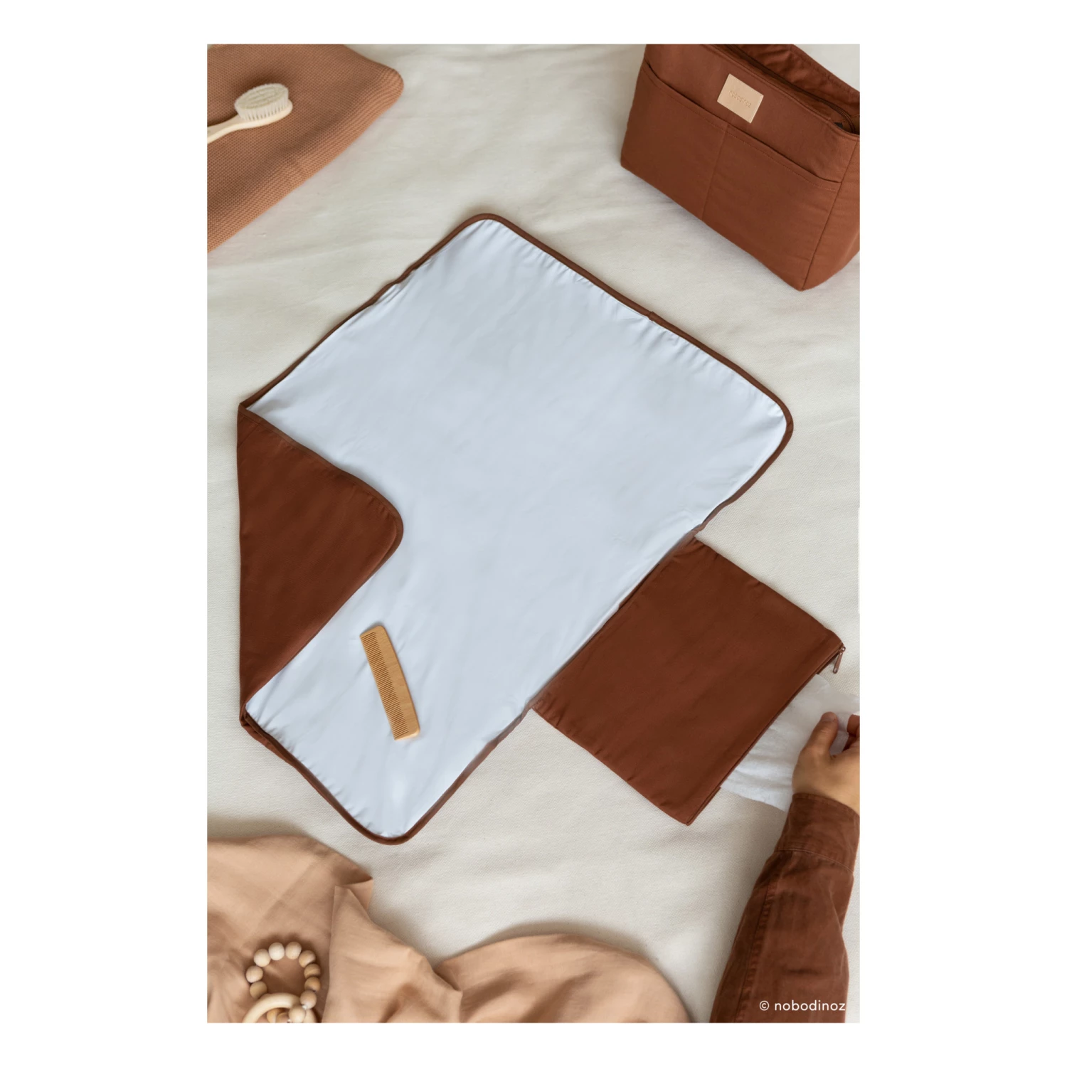 - A practical changing mat that can be taken everywhere, equipped with a pocket for your daily essentials.