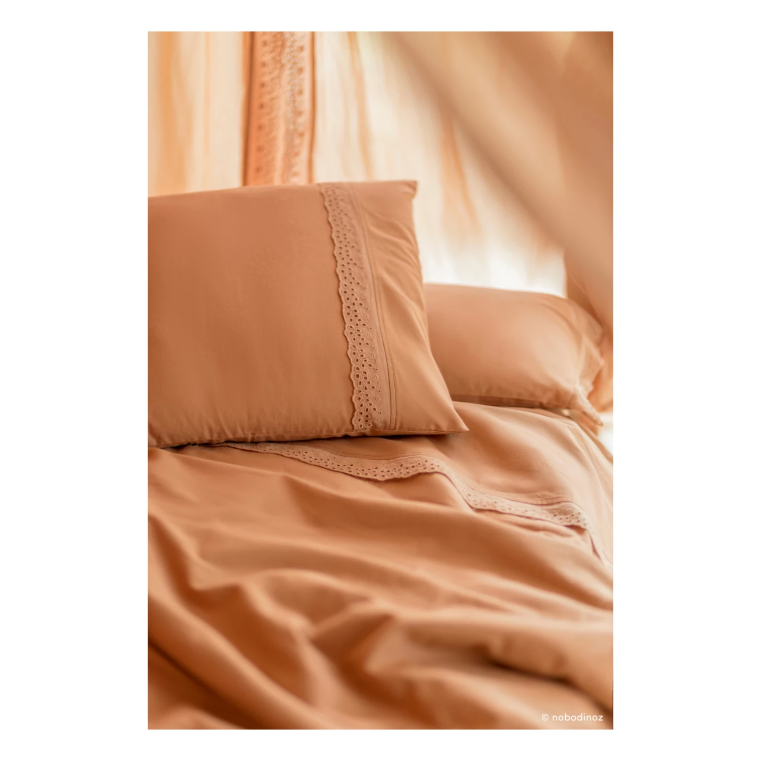 - Enjoy sweet dreams in this bedding set that is decorated with pretty lace details.